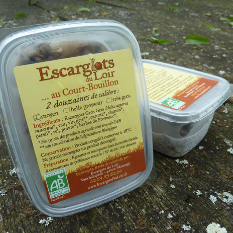 Escargots Helix Aspersa maxima* (Mollusques), eau, vin gris Pineau d'Aunis*, carotte*, oignon*, persil*, sel, poivre*, herbes de Provence*.